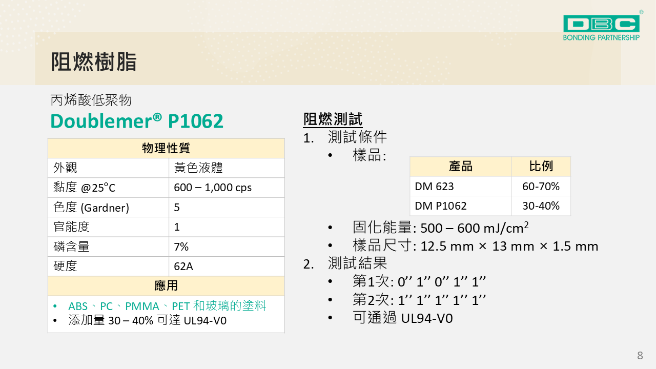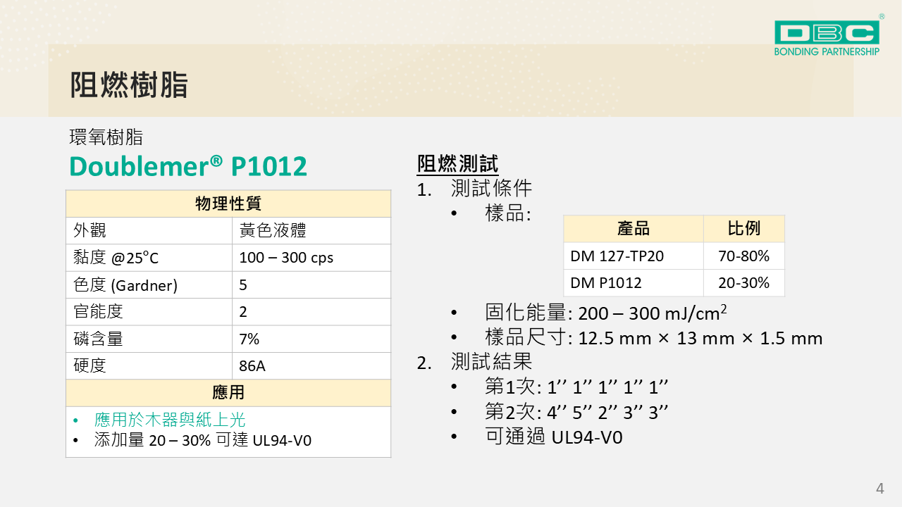 應用於阻燃材料、優異附著性、低折射率、準分子塗料、LED固化